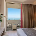 The modern Kriti Beach Hotel offers rooms with a balcony featuring climate control, along with a flat-screen TV with satellite channels. They are also complete with a fridge and glassware.